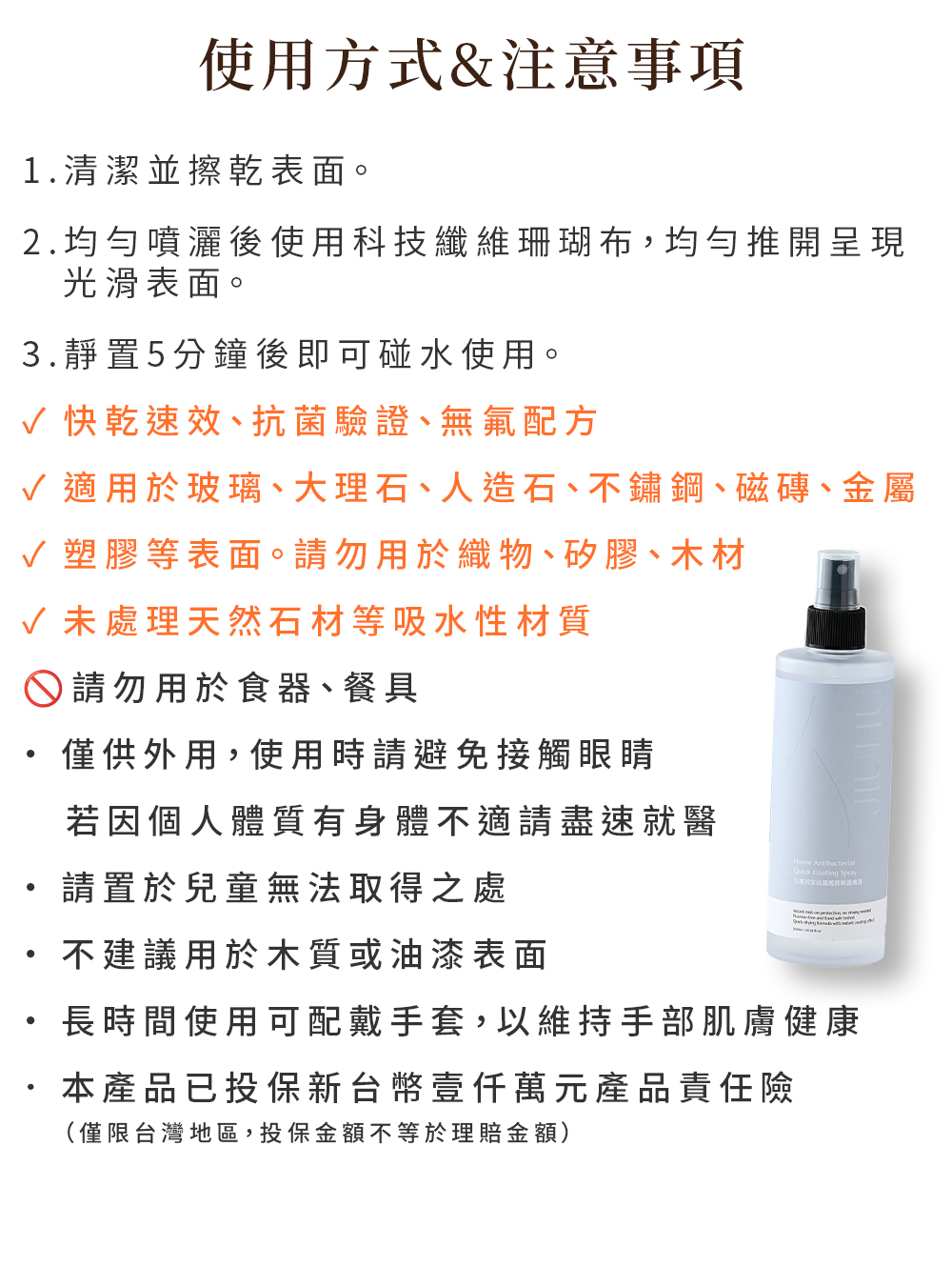 用途:日常維護鍍膜效果,提升撥水性與光澤。